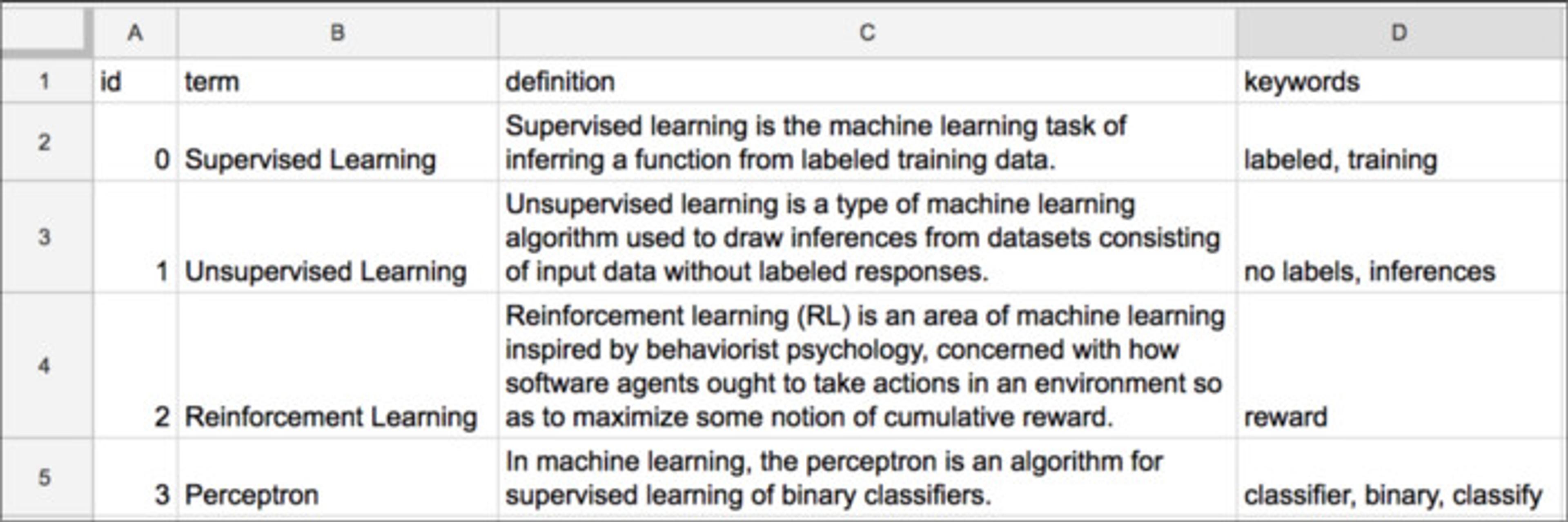 For many, spreadsheets might be the most convenient or easiest way to generate your ChatGPT dataset. The reason is that they are a convenient way to organize data in tabular form, with each row representing a data point and each column representing a feature or attribute of the data. When using a spreadsheet to store data for ChatGPT, you can use one row for each question and its corresponding answer, and you can use different columns to store information such as the question category, keywords, or any other relevant metadata. You can also use separate worksheets within the same spreadsheet to store different data or different versions of the same data.